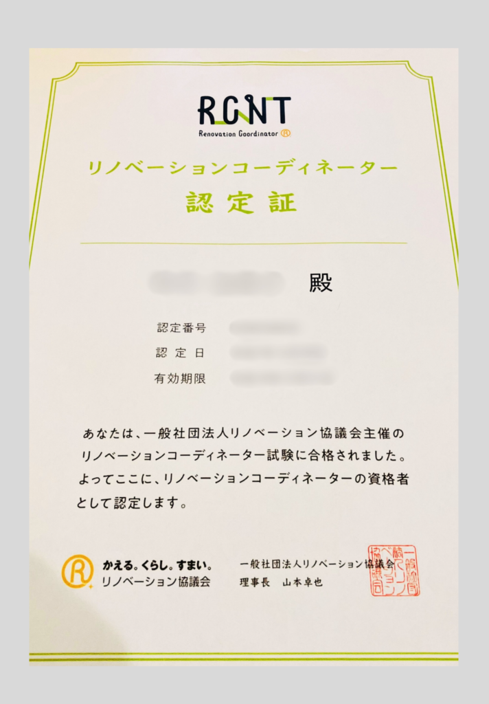昨年末、リノベーションコーディネーター資格試験に挑戦し合格する事ができました。